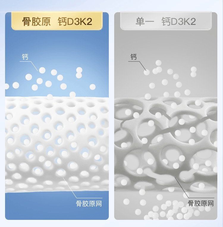 专家形象地比喻,骨胶原如同建筑中的“钢筋网”,构成致密而有弹性的支架体系;钙则像“水泥”,填充其间并提供硬度。只有在骨胶原结构稳定、框架完整的前提下,钙才能被有效沉积、长期留存,形成真正强韧的骨骼。